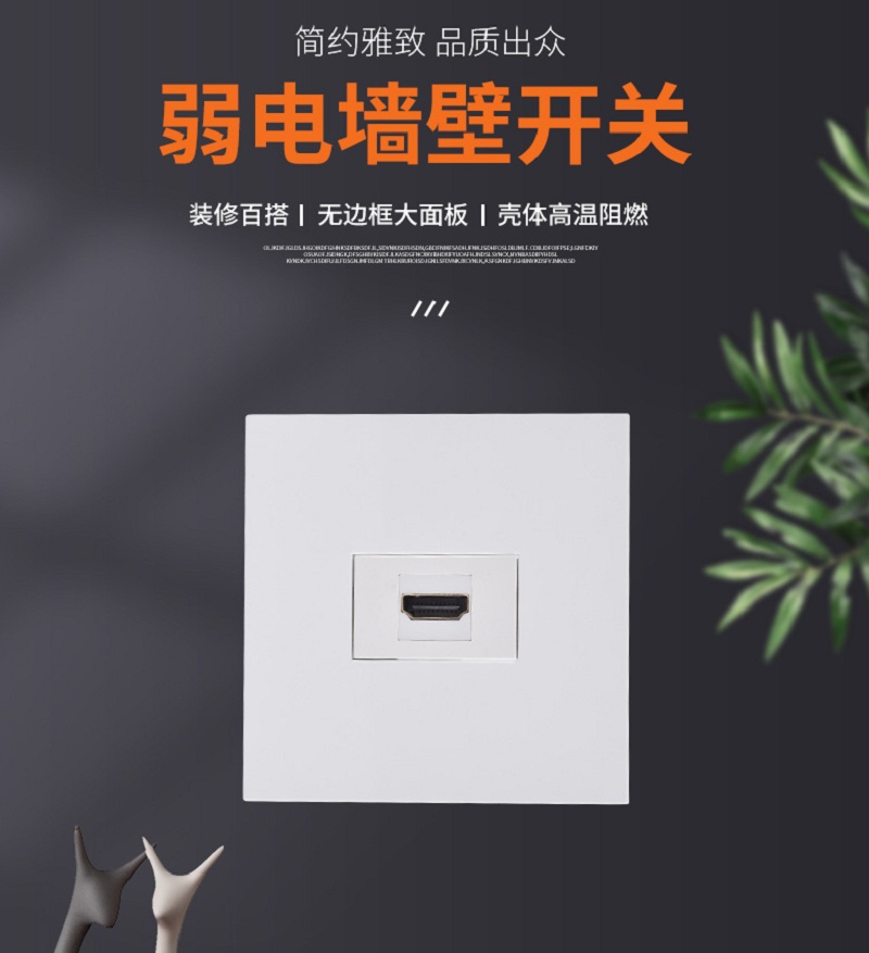 弱电墙壁开关,设计简约雅致,品质出众,装修百搭无边框大面板。